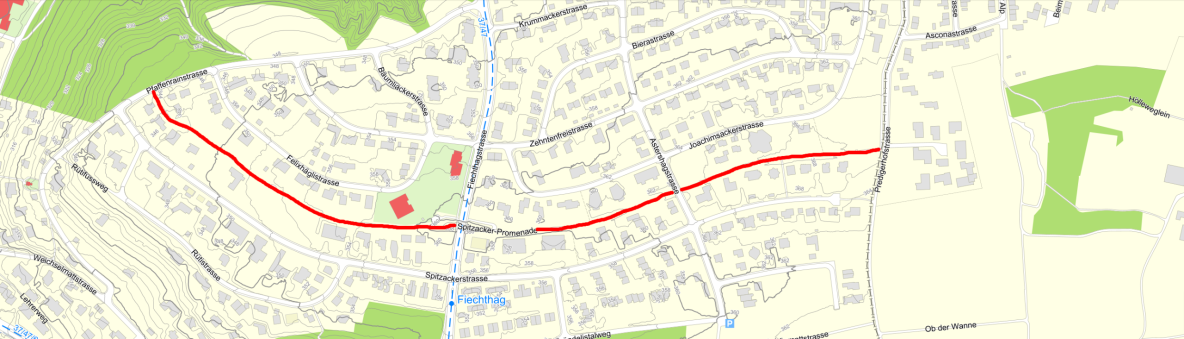 Die Spitzackerpromenade ist für viele Fussgängerinnen, Hundehalter und Anwohnende ein beliebter Spazierweg und dient als Naherholungsraum.