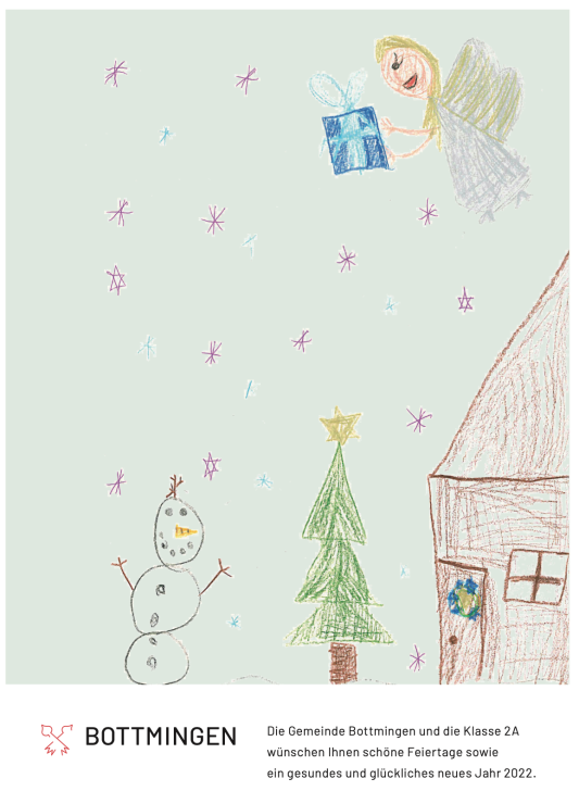 Die Gemeinde Bottmingen wünscht Ihnen besinnliche Feiertage und ein schönes Weihnachtsfest. In diesem Jahr haben die Kinder der Klasse 2A der Primarschule Bottmingen die Weihnachtskarten der Gemeindeverwaltung gestaltet. Wir danken den Schülerinnen und Schülern für ihre kreativen Arbeiten und dem Klassenlehrer Timo Winter für seine Unterstützung. Gerne können Sie alle Motive auf unserer Website anschauen.