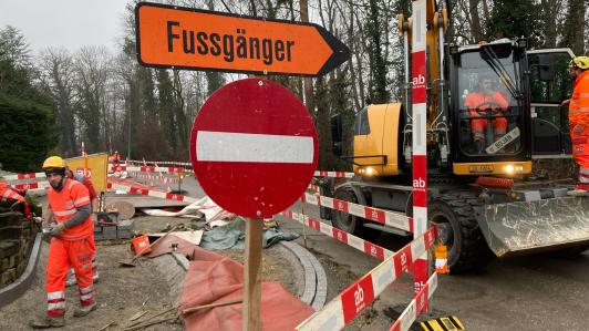 Die Bauarbeiten an der Pfaffenrainstrasse, die neben der Sanierung der Strasse und der Trottoirs auch den Bau von neuen Randsteinen sowie von Elektro- und Wasserleitungen inkl. Hausanschlüssen beinhalten, gehen zügig voran. Die Bauphase mit der südseitigen Sanierung (Siedlungszone) zwischen Spitzackerstrasse und Felixhäglistrasse ist abgeschlossen. Seit dem 6. Februar läuft nun die Sanierung auf der Nordseite (Waldzone) und das Montieren der Beleuchtung in diesem Abschnitt. «Der Zugang für Anwohnende und Fussgänger/innen ist jederzeit gewährleistet», so Bojan Rauch, der vor Ort zuständige Polier der Firma albin borer ag. In einer nächsten Etappe beginne dann die Sanierung zwischen der Felixhäglistrasse und der Zehntenfreistrasse – wiederum zuerst süd-, dann nordseitig.