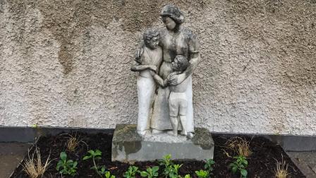 Zukünftig schmückt eine Statue den Abschnitt auf dem Friedhof Schönenberg, der Kindern gewidmet ist. Sie zeigt eine Frau, die ihre Arme schützend um zwei Kinder legt, die sich ebenfalls die Hand reichen. Die Statue stammt vom 2019 verstorbenen Bottminger Bildhauer und Autor Felix Thürkauf-Schweighauser. Seine verwitwete Gattin Hildegard entschied sich dieses Jahr, das Kunstwerk der Gemeinde Bottmingen bzw. dem Kinderfriedhof zu vermachen. Wir danken herzlich und sind überzeugt, dass die Statue damit einen würdigen Platz gefunden hat.