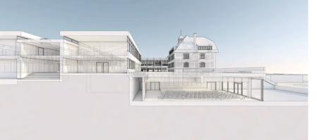 Illustration: Der geplante Mehrzweckraum im Sockelgeschoss unter der Pausenplatz-Plattform.