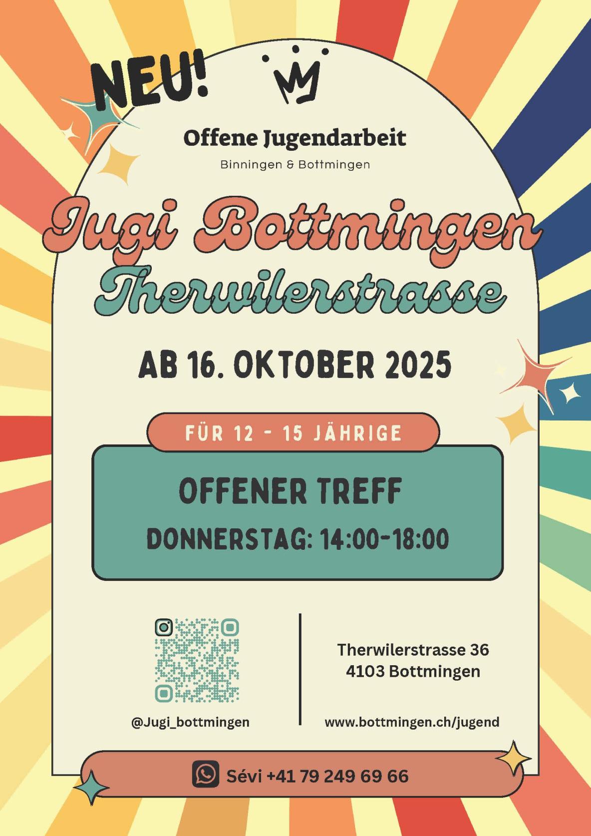 Für die jüngeren Jugendlichen unter 16 Jahren (U16) bleibt ein sicherer und gut erreichbarer Treffpunkt wichtig. Ab den Herbstferien eröffnet die neue Mitarbeiterin Sévi Salathe an der Therwilerstrasse 36 einen Offenen Treff, der auf die Bedürfnisse dieser Altersgruppe zugeschnitten ist. Der Treff öffnet jeweils am Donnerstagnachmittag von 14 – 18 Uhr.