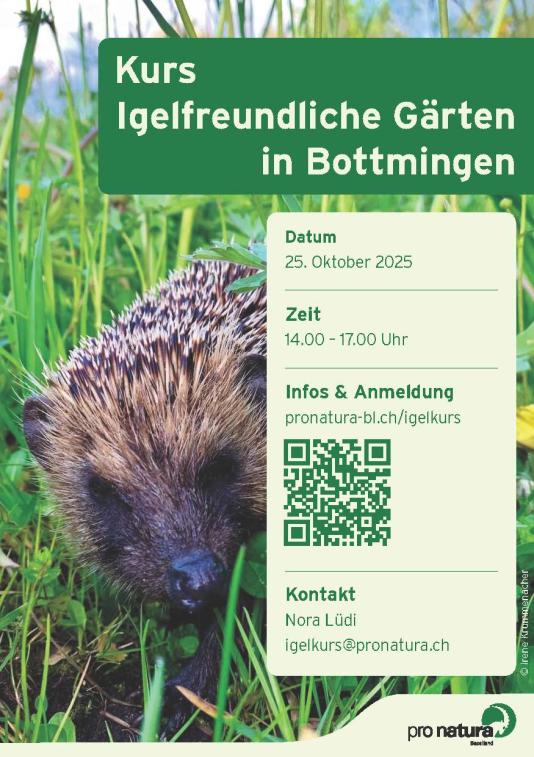 Weitere Infos und Anmeldung via https://www.pronatura-bl.ch/de/igelkurs-bottmingen