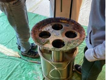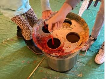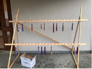 Unter der Anleitung von Adrian Moor bekamen wir einen Docht, den wir zuerst in eine selbstgewählte Farbe 30 Sekunden halten mussten. Ab dem zweiten Mal hielten wir den Docht nur noch kurz in dem flüssigen Wachs. Nach jeder Eintauchphase liefen wir draussen ums Haus, damit die Kerze abkühlen konnte. So wurde die Kerze Stück für Stück dicker.
